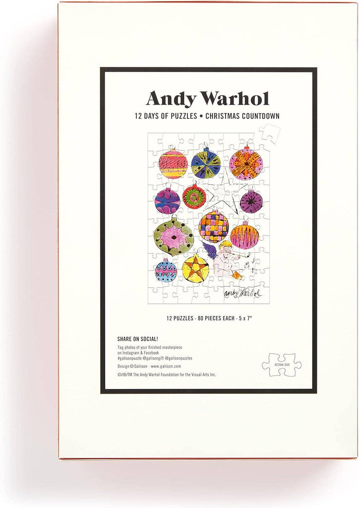 The Andy Warhol 12 Days of Puzzles Christmas Countdown from Galison features 12 days of puzzles featuring Warhol's whimsical Christmas paintings, drawings and prints from the 1950s. These Andy Warhol puzzles are the perfect gift for puzzle and fine art enthusiasts alike.